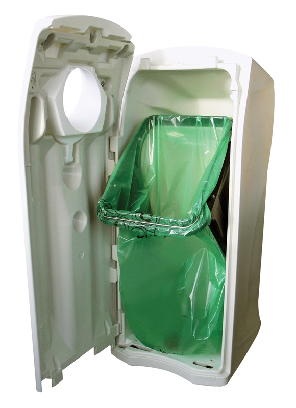 Grote capaciteit recyclingcontainer vervaardigd van rotatiegegoten kunststof (MDPE). Voorzien van ronde inwerpopening, afvalzakhouder en deur aan de voorzijde. Gemakkelijke toegang voor het legen en vervangen van de afvalzak. Geïntegreerde mogelijkheid voor ballast of vloermontage.