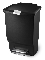 Rechthoekige kunststof pedaalemmer met gedempt sluitend deksel. Met schuifmechanisme om de afvalbak eenvoudig af te sluiten waardoor het deksel niet te openen is door huisdieren.